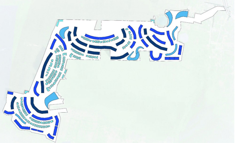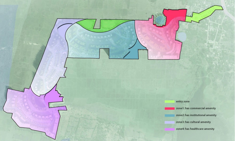 自然景观将住宅小镇里的各个社区由自然分开,也使它们自然相连,这说明了这些景观是狭道或是小路 --- 它既可以看成是社区间的分界线,也可以看成是社区中的一部分。一条旁边伴有自行车道和人行道的小溪将这些社区全部连接起来。此项目旨在达到LEED(美国绿色建筑)金级标准,所以建筑师对于一些景观(例如护堤和河水)进行了特别设计,这样就使它们能够收集雨水和防止水土流失。