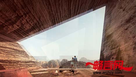 Oppenheimd的中标方案致力于用一种不同于社会上普遍的自然建筑开发方式来打造这些度假旅店,即综合考虑这里的自然特色 --- 一个沙漠与峭壁相汇处的神奇峡谷,来综合设计。