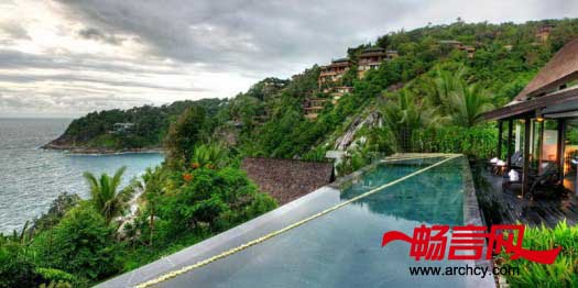 古老的阴阳哲学理念将这座奢华的建筑完美地融入到大自然中。而建筑和室内设计又将它打造成一座非常理想的住宅。这座独特华丽的现代别墅位于普吉岛黄金地段Millionaires’ Mile的私人峭壁之上,共有四层,设有4间陈设讲究的卧室,每一间卧室都带有私人浴室和观海平台。