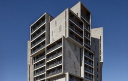 建筑左侧是科技研究园区 Cortex Park,右侧的森林后方便是南丹麦大学校园。整体建筑由 3 幢 15 层的塔楼构成,共有 250 间公寓,各楼之间有中部连通的共享空间。它并没有严格意义上的前后立面,多面体的结构使得人们围绕建筑移动到不同位置会看到建筑不同的模样。