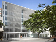 这个7层楼的项目在里约的莱伯伦区(Leblon)。它将是巴西的VINCI Partners投资公司的新总部。这幢建筑几乎为立方体,高度为25米,有6,500平方米的可出租工作空间。由于这幢建筑的场地三面被围绕,理查德-迈耶建筑事务所想出了许多办法,解决办公室的天然照明问题。