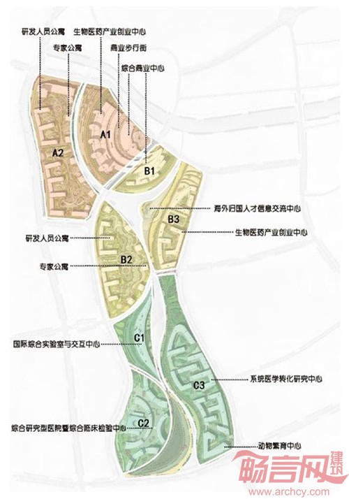 项目规划了一个前景广阔、管理先进、体验丰富、低碳生态的国际性生物医疗产业园。园区包含三个功能:系统医疗产业区、研发人员配套商业区与研发人员配套公寓区。