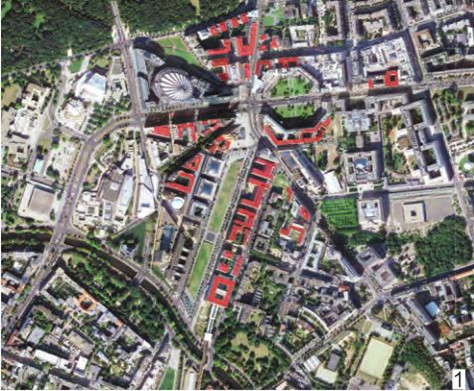 德国是最早提出屋顶绿化概念的国家,经过多年的快速发展,德国已成为屋顶绿化最先进的国家。柏林从1920年开始,大约完成了2 000个屋顶绿化工程。波茨坦广场是柏林的新中心,其规划设计十分注重屋顶绿化,使屋顶绿化成为城市规划设计中的重要部分。以波茨坦广场为中心向外辐射的建筑屋顶大部分都进行了屋顶绿化(图1),屋顶绿化与周围景观环境相互融合,空间分布形态与放射形的城市空间形态相协调。通过多条“线”形屋顶绿化走廊的打造,形成了以波茨坦广场为中心的放射形屋顶绿化布局形态,营造了生动活泼、多姿多彩的城市景象。