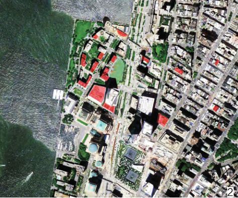 美国是一个非常重视屋顶绿化的国家,希望通过屋顶绿化来缓解“城市热岛效应”。美国纽约曼哈顿巴特利公园城在进行景观设计的同时,将屋顶绿化纳入规划设计体系,将公园城西北部临近海滨公园的建筑屋顶全部进行了屋顶绿化,与地面海滨公园相结合,形成大面积的城市绿化块面,对于延续城市景观绿带、丰富城市景观层次、打造多样化的城市空间具有重要意义,也为该片区的居民提供更多的休闲空间(图2)。