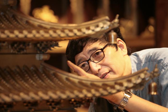 而真正让朱府铜艺焕发新生的,却源于2006年的一场惊世大火。当时朱炳仁为常州天宁寺建造宝塔,在竣工的最后关头,一场大火烧了起来。塔的底层屋檐被烧毁,而高温熔炼形成的铜结晶体千姿百态,却引起了朱炳仁的注意。