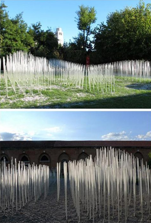 中国园林包括我们最早的汉代的禅园非常有意思,今天这种园林艺术被日本很好地保留下来。在中国园林中,你看到的是少,实际上是多。日本的枯山水园林里,你很难想象在所谓的白沙背后是什么,我觉得这点和中国的绘画很像。对于中国画而言,阅读它的人、欣赏它的人是在帮助一个艺术家完成他的作品。易园是我威尼斯双年展的作品,就是源于对中国文化的一种理解,我没有用一种传统的手法表现这件作品,而是希望通过一首诗表达中国文人造园的想法。实际上它是无形的,但是无形而有神。有的时候看起来像风,有的时候看起来像水,给观者提供了很多好奇。这是似冰、似水、似竹的建筑,每个人都会被它的声音和视觉所影响,小孩子也可以在里面玩。