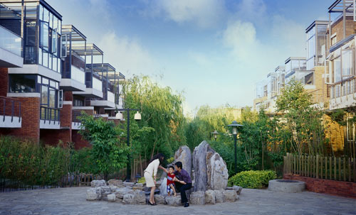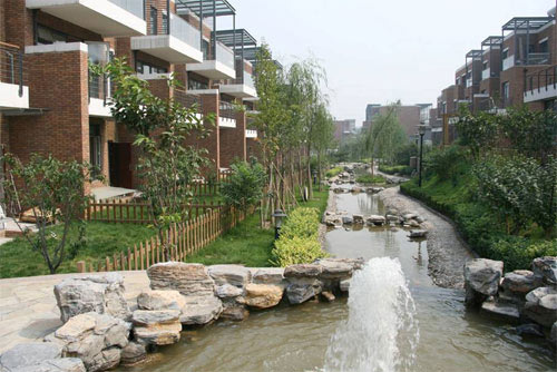 另外,北京是缺水的城市,所以各个小区里面不管多大的地方都愿意做一个水景,或者做一个圆形湖、一个小溪。实际上在北京,水景在一年四季中,冬天不能用,夏天蒸发很快,所以我们应该考虑通过技术处理或者其他景观替代水景。