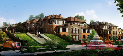 长河玉墅两侧的景观非常多,如何让居住在中间的人享受到两侧得景观就成为设计师考虑的问题,最后他把中间的部分拔高,形成了一个落差3米的峡谷带,整个贯穿长河玉墅。