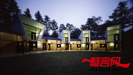 M小住宅群面向一条繁忙的街道,这里经常有游客的车辆和公交车经过,在夏天尤其繁忙,但是在花园那一侧却有一个十分静谧、宜人的森林。三户有女儿的家庭住