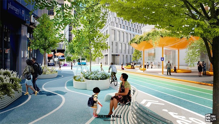 BIG事务所与WXY事务所合作,公布了布鲁克林市中心核心区概念性设计方案。项目包括公共领域、街道景观和绿色基础设施的改善,重点是优化步行体验,愿