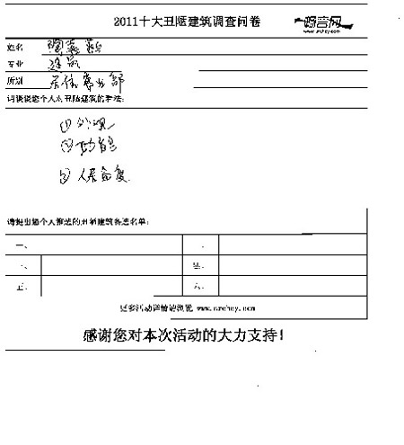 为促进建筑行业健康理性发展,畅言网在举办2010中国十大丑陋建筑评选后,2011中国十大丑陋建筑评选活动随即展开。为让更多建筑界人士参与到评选中